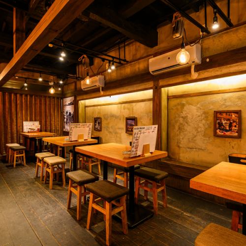 広々とした店内には、グループ利用に便利な4名様掛けのテーブル席を5卓ご用意しております◎木の質感を活かした温かみのある雰囲気は、少人数のお集まりから中規模の宴会まで幅広く対応可能です。また、大人数での貸切相談も承っておりますので、会社宴会や打ち上げなど、様々なシーンに合わせてぜひご利用ください♪
