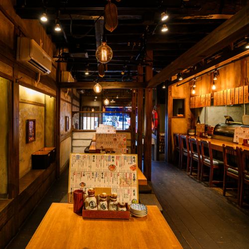 広々としたテーブル席は、2名様から4名様までのご利用に最適です。木の温かみを感じる落ち着いた内装は、ご友人との楽しい食事会や、ご家族での団らん、同僚との飲み会など、幅広いシーンでご利用いただけます◎開放感がありながらも、どこか懐かしく心地よい空間で、自慢の料理を囲みながら賑やかなひとときをどうぞ♪